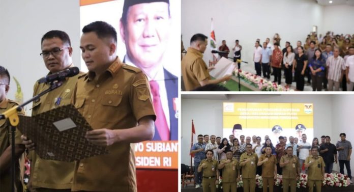 Mitra-Bupati Mitra, Ronald Kandoli mengukuhkan pengurus Koperasi Merah Putih di Minahasa Tenggara (Mitra), pada Senin (21/07-2025).