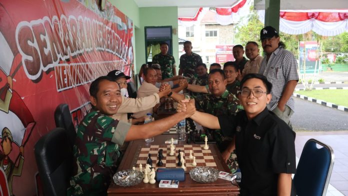 Minahasa – Dalam rangka memeriahkan HUT RI ke-80, Komandan Kodim (Dandim) 1302/Minahasa, Letkol Inf Bonaventura Ageng F. Santoso, menggelar pertandingan catur yang mempertemukan para juara lomba catur Kecamatan Remboken dengan para juara catur Kodim 1302/Minahasa. Lomba ini berlangsung di Makodim 1302/Minahasa, Kelurahan Sasaran, Kecamatan Tondano Utara, Selasa (26/8/2025) sore.