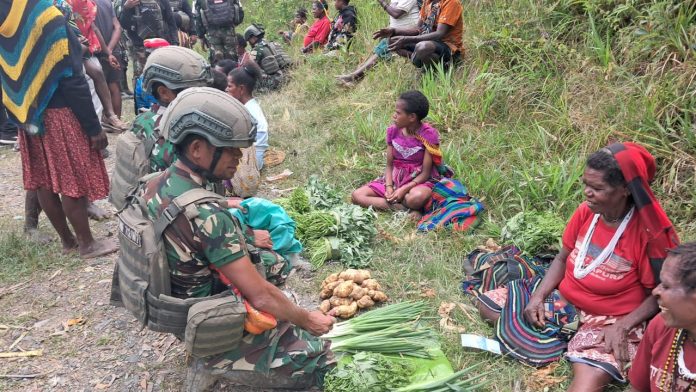 Papua jelajahterkini.com – Senyum bahagia tak bisa disembunyikan dari wajah mama-mama Papua di Kampung Eknemba, Distrik Sugapa, ketika prajurit Satgas Pamtas RI-PNG Mobile Yonif 712/Wiratama datang bukan dengan senjata di tangan, melainkan dengan niat memborong hasil tani mereka (14/9/2025).