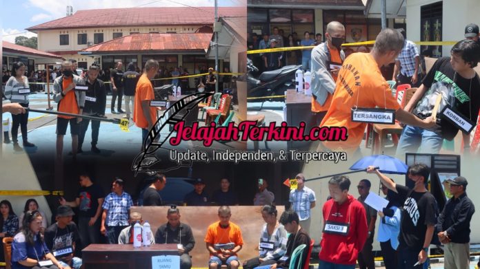 Minahasa jelajahterkini.com– Polres Minahasa melalui Satreskrim Unit 1 Jatanras menggelar rekonstruksi kasus pembunuhan di Desa Kasuratan, Romboken, Selasa (30/9/2025). Dua tersangka, RM (20) dan AS (19), memperagakan 56 adegan yang menggambarkan secara detail aksi mereka hingga merenggut nyawa korban.