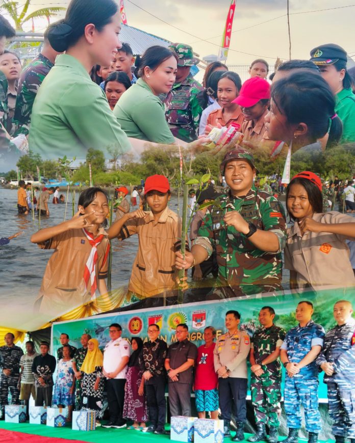 Minsel jelajahterkini.com– Dalam rangka memperingati HUT ke-80 TNI, Kodim 1302/Minahasa menggelar aksi nyata peduli lingkungan dengan menanam 1000 pohon mangrove di pesisir Kabupaten Minahasa Selatan.