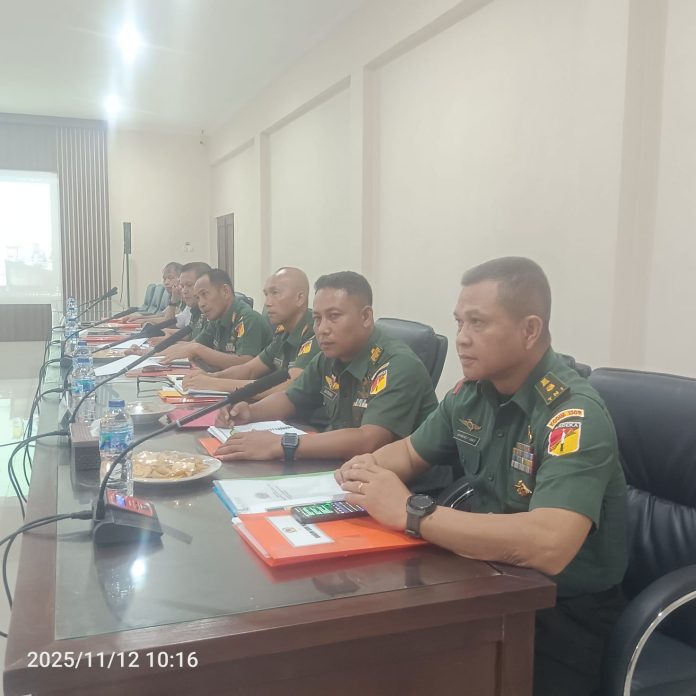Minahasa Jelajahterkini- Kodim 1302/Minahasa terus menunjukkan komitmennya dalam pembinaan karier prajurit. Hal ini tercermin melalui keikutsertaan dalam Sidang Jabatan Perwira dan Usul Kenaikan Pangkat (UKP) Triwulan IV Tahun Anggaran 2025 yang digelar di Makorem 131/Santiago, Rabu (12/11/2025).