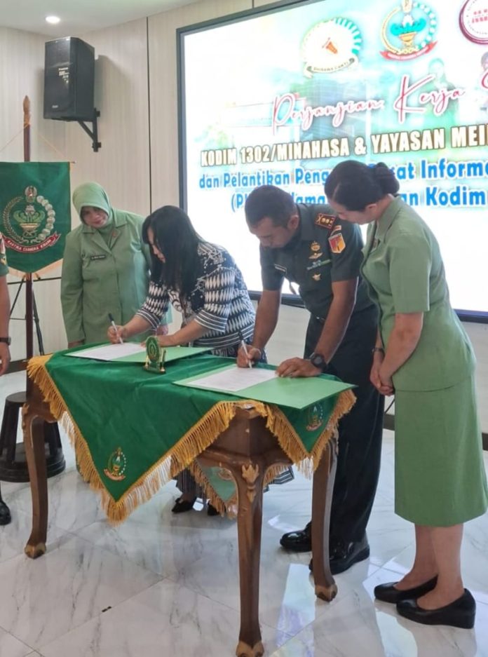 Penandatanganan dilakukan oleh Dandim 1302/Minahasa Letkol Inf Bonaventura Ageng F. S., bersama Ketua Persit KCK Cabang XIV Ny. drg. Basaria Manurung, Sp.BM., serta Meifa Warokka selaku Ketua Yayasan.