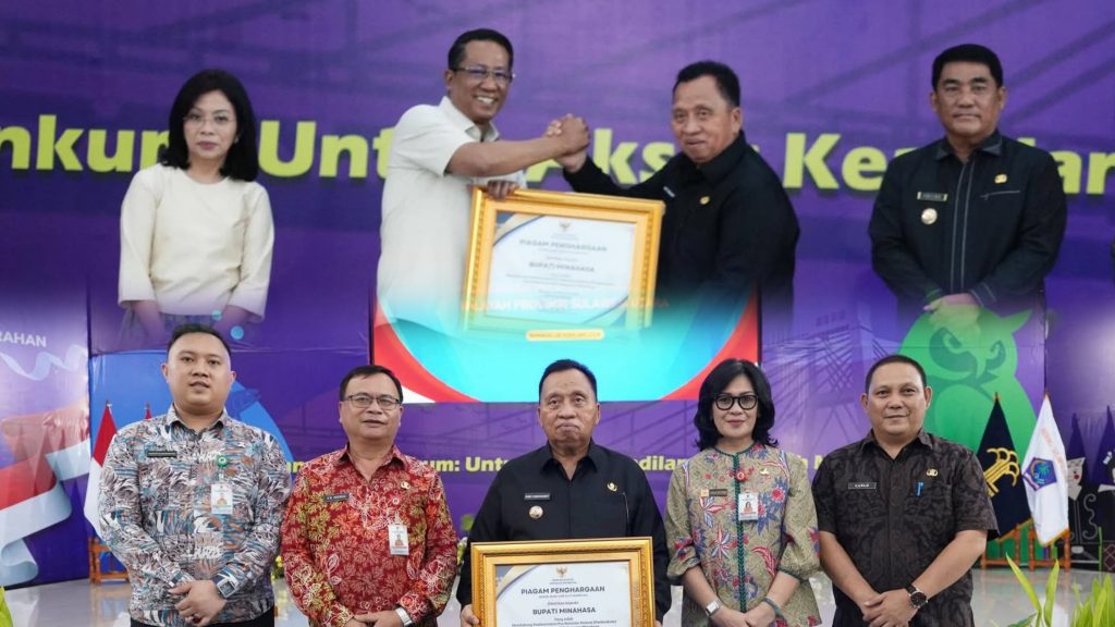 Pada kesempatan yang sama, Bupati Minahasa menerima Piagam Penghargaan dari Menteri Hukum Republik Indonesia, Supratman Andi Agtas, atas dukungan Pemerintah Kabupaten Minahasa dalam pembentukan Posbankum Desa/Kelurahan di wilayah Minahasa.