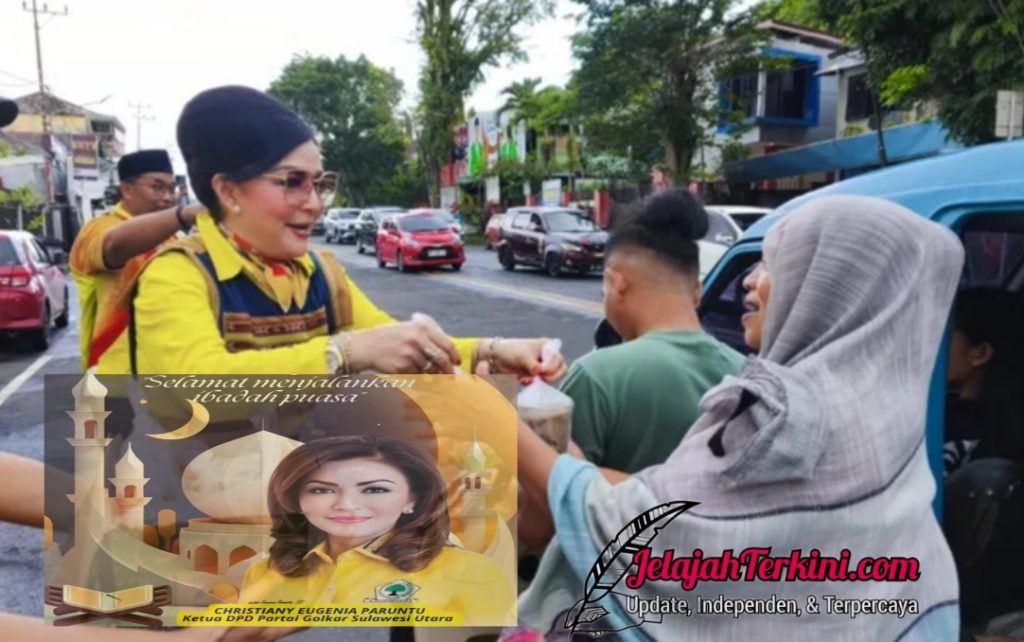 Manado, Jelajahterkini – Memaknai bulan suci Ramadhan sebagai momentum berbagi dan mempererat kebersamaan, Ketua DPD I Partai Golkar Sulawesi Utara, Christiany Eugenia Paruntu (CEP), menggelar aksi pembagian takjil gratis kepada warga Muslim yang menjalankan ibadah puasa.