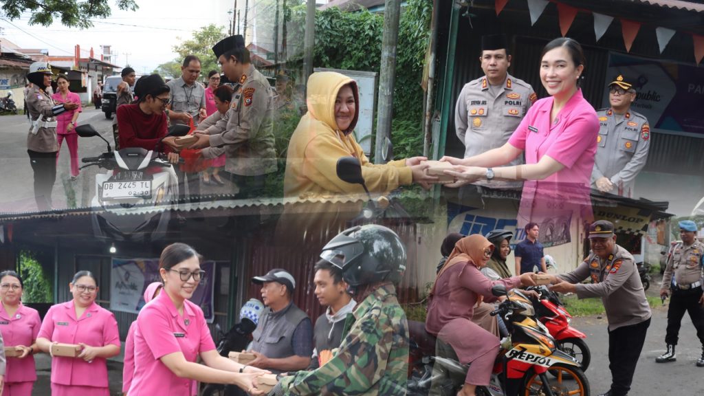 Minahasa, Jelajahterkini – Kapolres Minahasa bersama Pejabat Utama (PJU), personel Polres Minahasa dan Bhayangkari turun langsung ke jalan membagikan takjil kepada masyarakat di Perempatan Galaxi, Tondano, dalam rangka berbagi di bulan suci Ramadhan. Jumat 6/3/2026