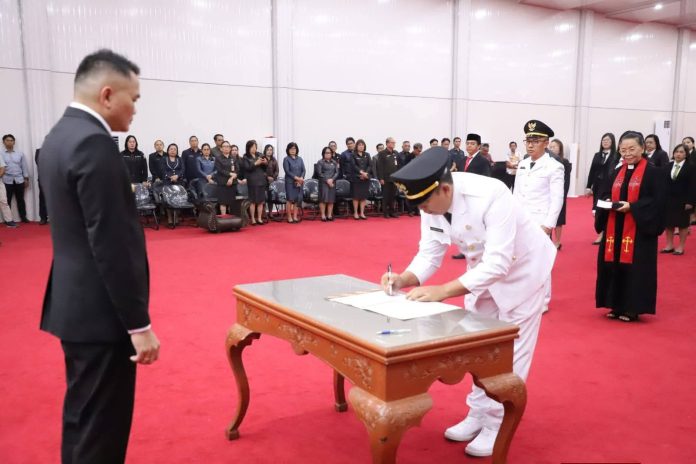 Mitra Jelajahterkini.com– Bupati Minahasa Tenggara Ronald Kandoli secara resmi melantik dan mengambil sumpah/janji 63 pejabat di lingkungan Pemerintah Kabupaten Minahasa Tenggara, Jumat (10/04/2026).