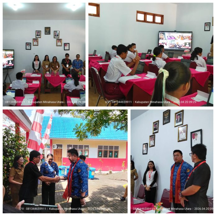 Minahasa Utara, Jelajahterkini.com – Pemerintah Kabupaten Minahasa Utara melalui Wakil Bupati Kevin William Lotulung melaksanakan pemantauan langsung kegiatan Tes Kemampuan Akademik (TKA) jenjang Sekolah Dasar (SD) Tahun 2026 yang berlangsung di SD Inpres Sarongsong I, Senin (20/4/2026).