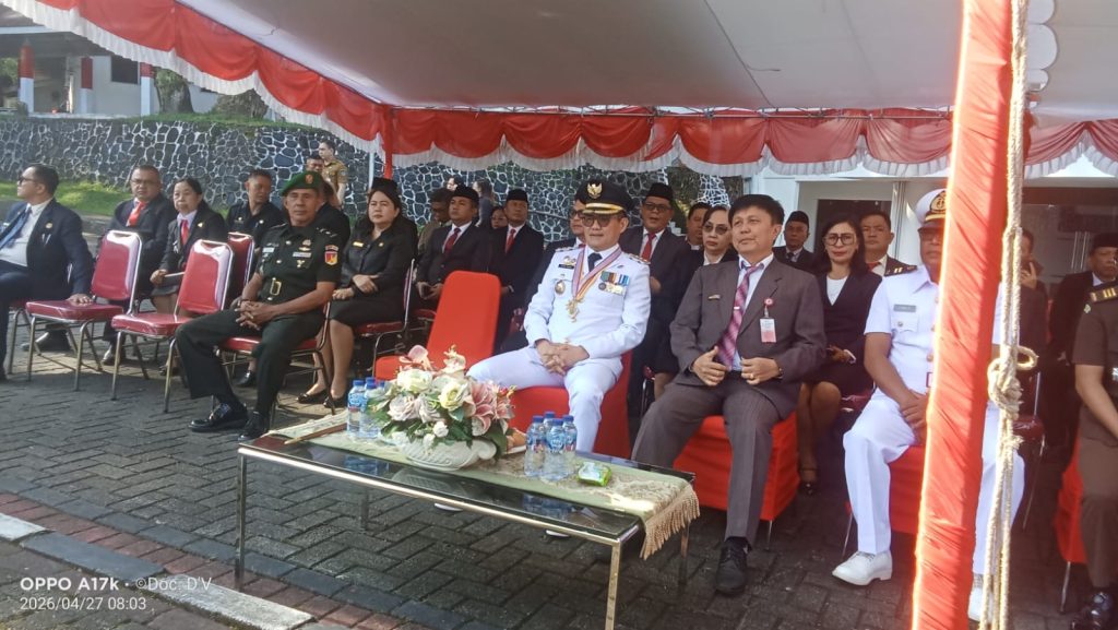 Peringatan Hari Otonomi Daerah tahun ini menjadi momentum penting bagi jajaran Pemerintah Kabupaten Minahasa Utara dalam memperkuat komitmen mewujudkan tata kelola pemerintahan yang efektif, transparan, dan berorientasi pada pelayanan publik.Upacara berlangsung tertib dan penuh semangat kebersamaan, diikuti oleh aparatur sipil negara (ASN), para pejabat daerah, serta peserta lainnya. Kehadiran seluruh unsur tersebut mencerminkan tekad bersama dalam mendukung pelaksanaan otonomi daerah yang semakin maju dan berkualitas.